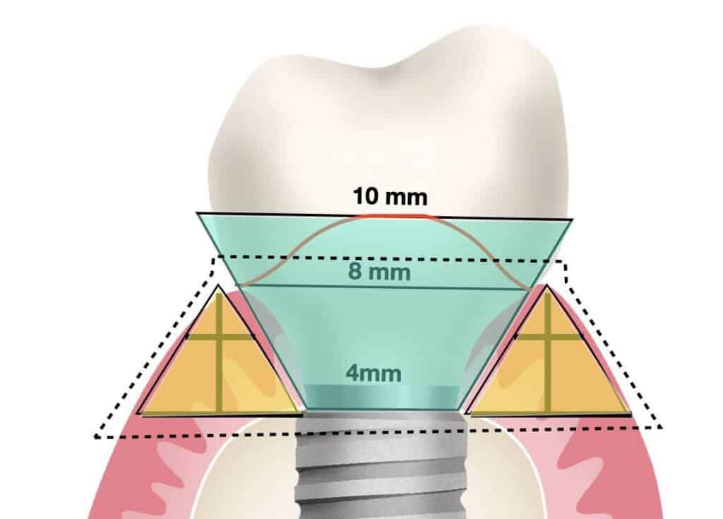 So first thing to look for when trying to build the pyramid is a vast piece of flat land to set the base. Yes, we do need a certain minimum height of soft issue to establish a healthy and sustainable peri-implant tissue anatomy and the larger the flat base the higher you will be able to reach with your pyramid. But what is the best way to secure the flat land to build on?